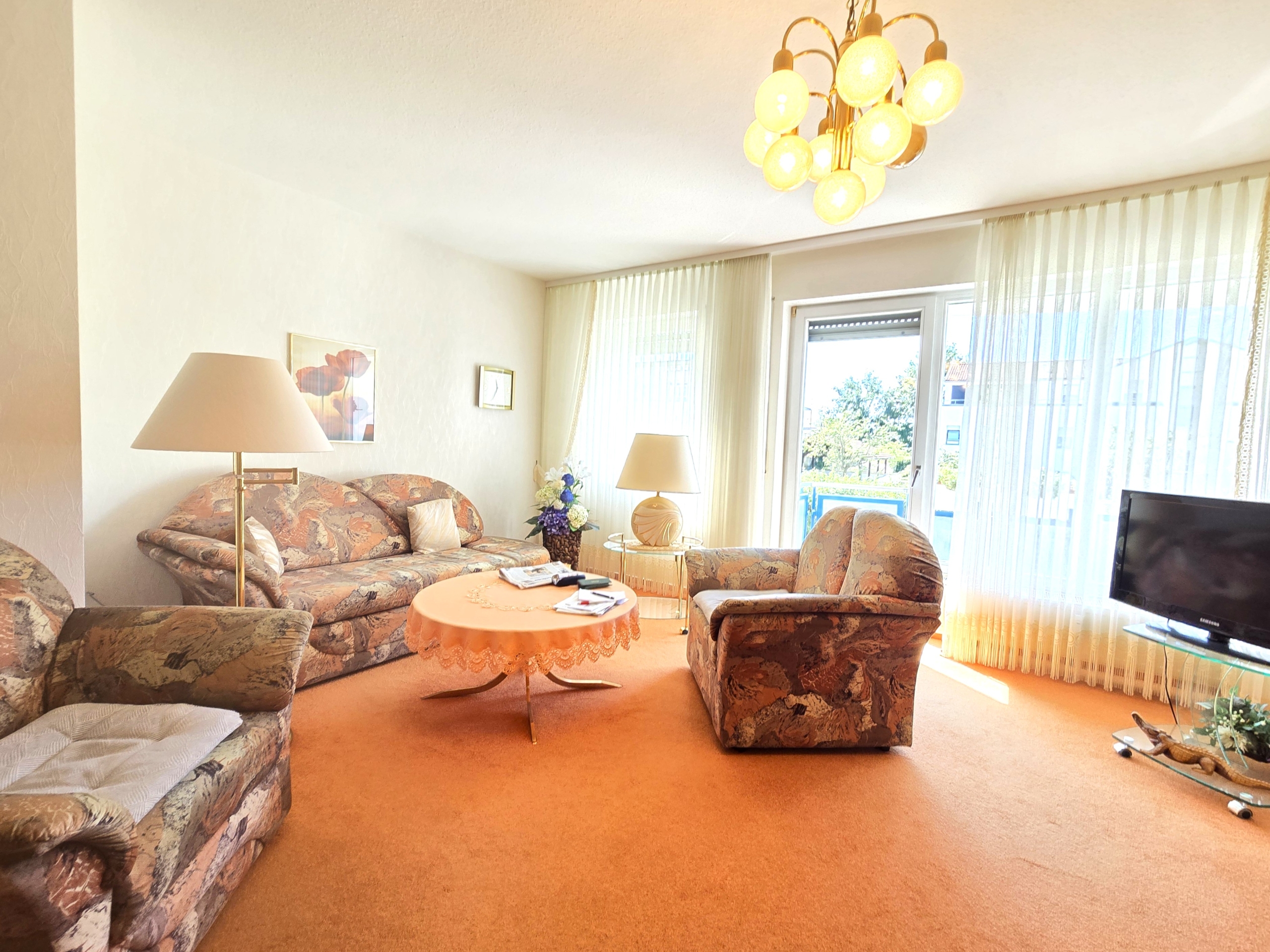 Über die Balkontür gelangt man auf den großzügigen überdachten Südbalkon, der im Sommer zum Grillen und Verweilen einlädt und einen herrlichen Ausblick in die Ferne bietet.